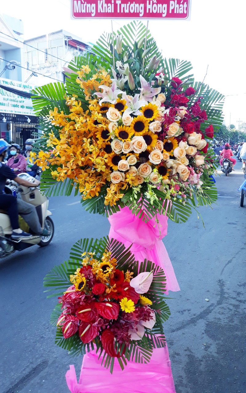 Khai trương là thời khắc trọng đại nhất của người kinh doanh. Hiểu được vấn đề đó Hoa Tươi Hoàng Nguyên thay bạn mang đến những lẵng hoa rực rỡ giống như một lời chúc mừng thành công, làm ăn phát đạt đến đối tác, bạn bè, người thân trong ngày vui khai trương. Những kệ hoa tươi là món quà ý nghĩa nhất, mang vẻ đẹp sang trọng, tinh tế và lời chúc may mắn, thịnh vượng đến người nhận.