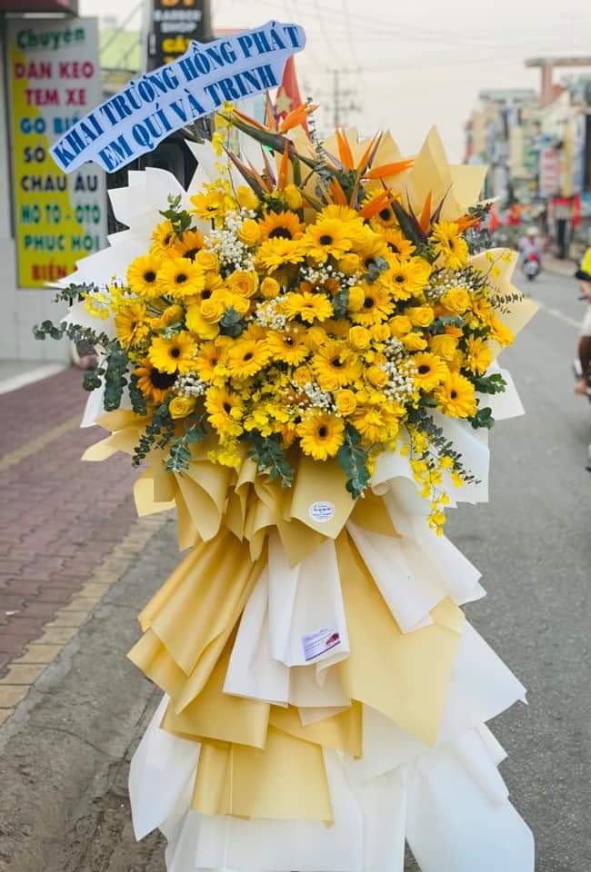 Khai trương là thời khắc trọng đại nhất của người kinh doanh. Hiểu được vấn đề đó Hoa Tươi Hoàng Nguyên thay bạn mang đến những lẵng hoa rực rỡ giống như một lời chúc mừng thành công, làm ăn phát đạt đến đối tác, bạn bè, người thân trong ngày vui khai trương. Những kệ hoa tươi là món quà ý nghĩa nhất, mang vẻ đẹp sang trọng, tinh tế và lời chúc may mắn, thịnh vượng đến người nhận.